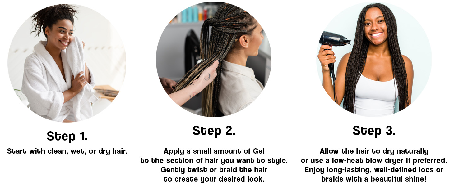 - Enjoy your beautifully styled locs or braids with an incredible shine!