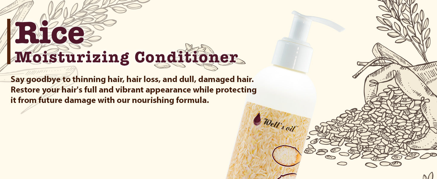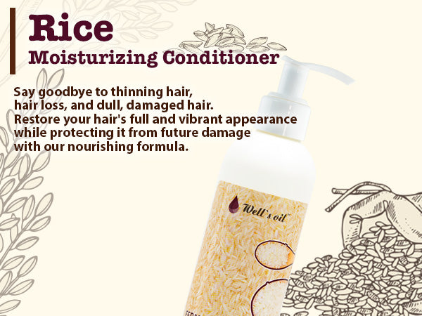 Transform your haircare routine with Well's Oil Rice Moisturizing Conditioner, a premium and revitalizing hair conditioner designed to restore and strengthen your tresses for a luxuriously soft and healthy mane.