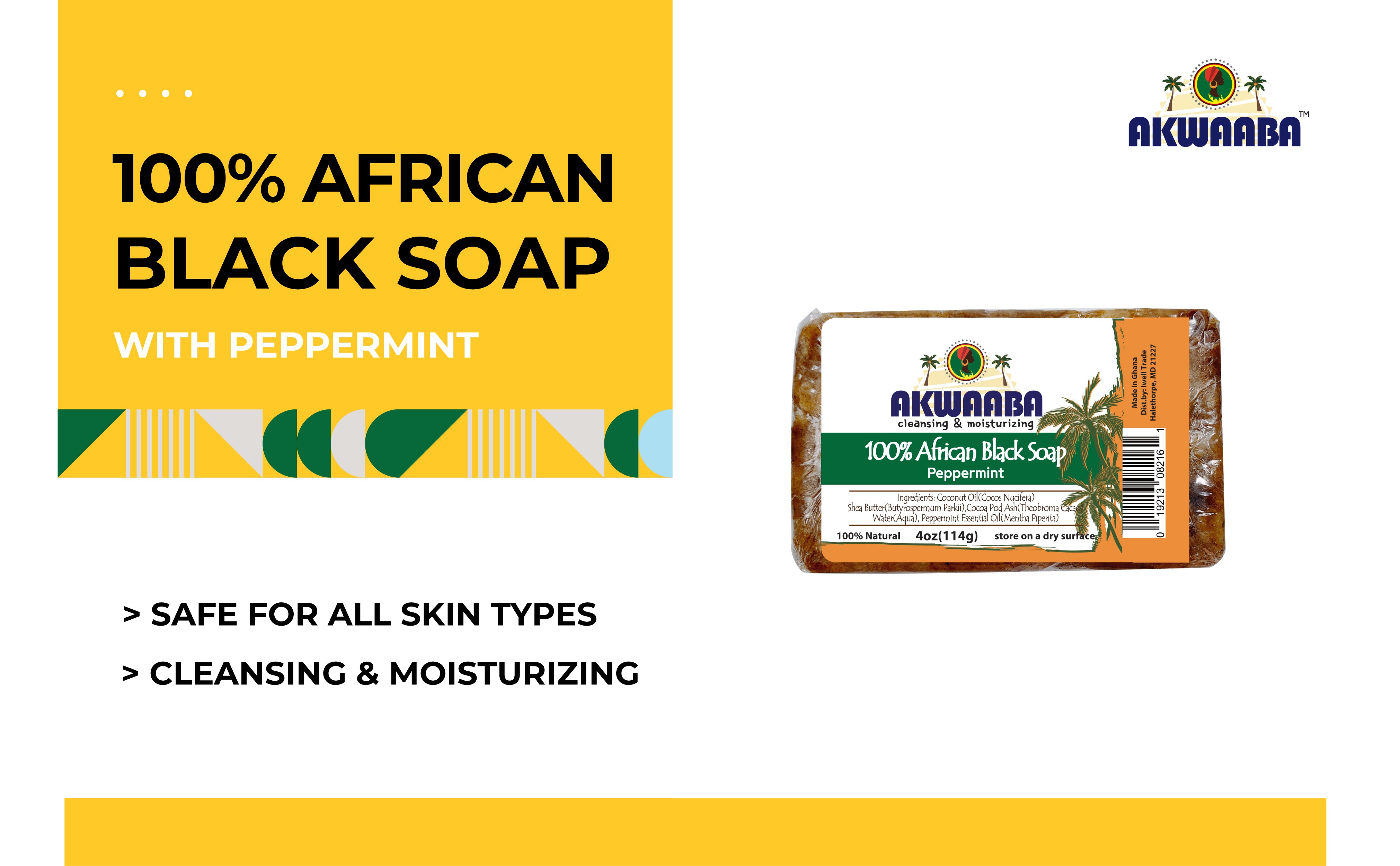 - 100% Pure and Authentic: Our African Black Soap is made with a blend of 100% natural ingredients sourced from Ghana. This product is free from chemicals and additives, making it suitable for all skin types.