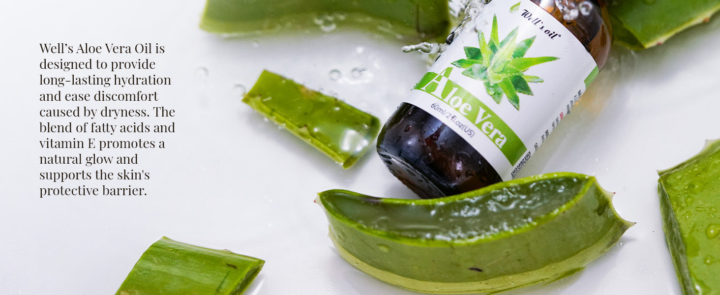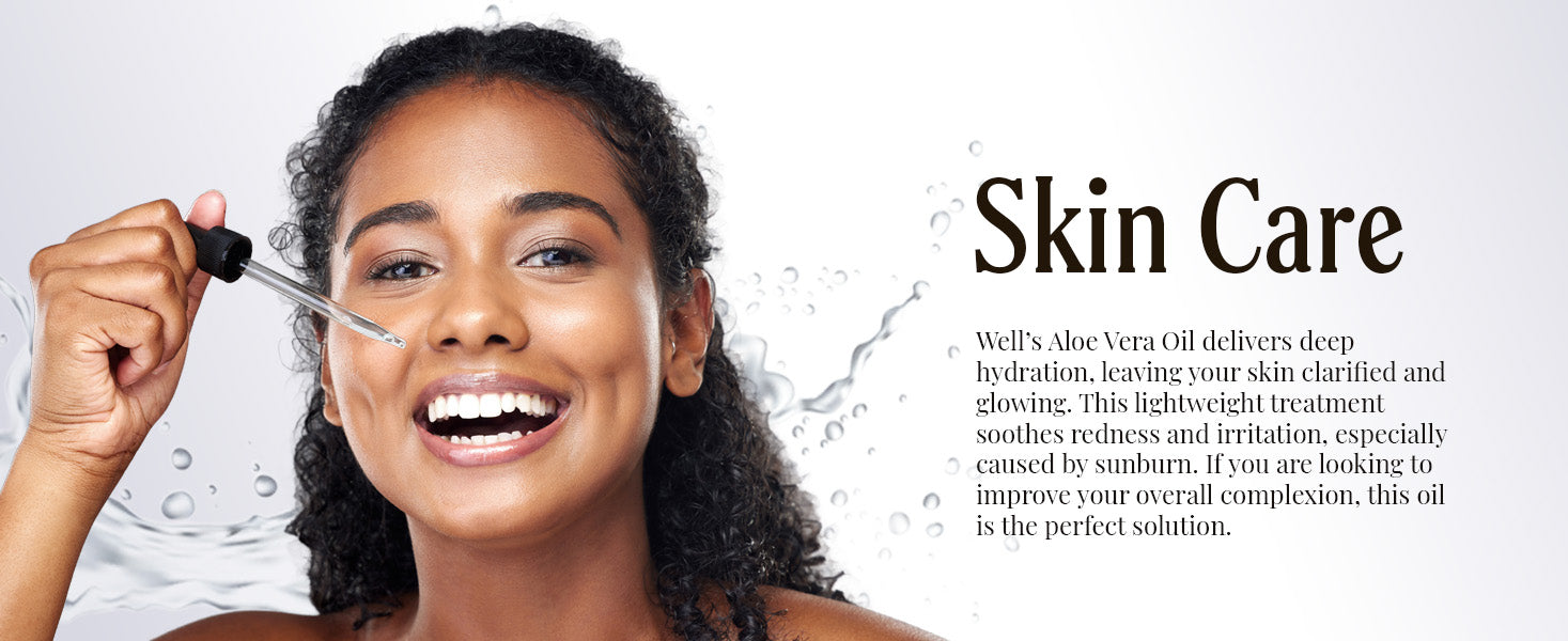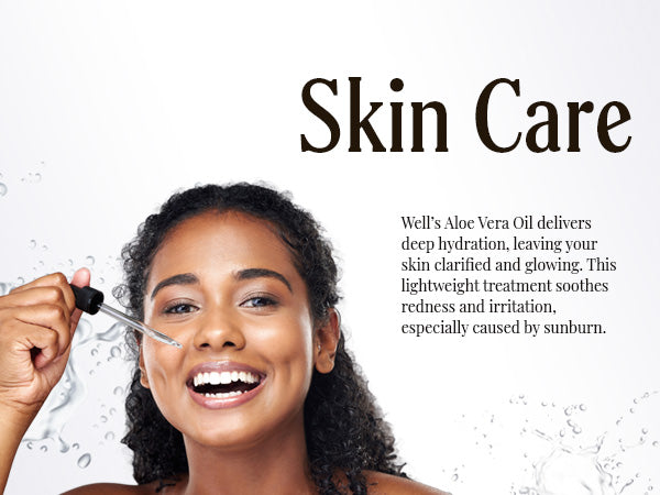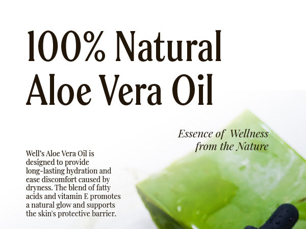 - For your skin: Well’s Aloe Vera Oil delivers deep hydration, leaving your skin clarified and glowing. This lightweight treatment soothes redness and irritation, especially caused by sunburn. If you are looking to improve your overall complexion, this oil is the perfect solution.