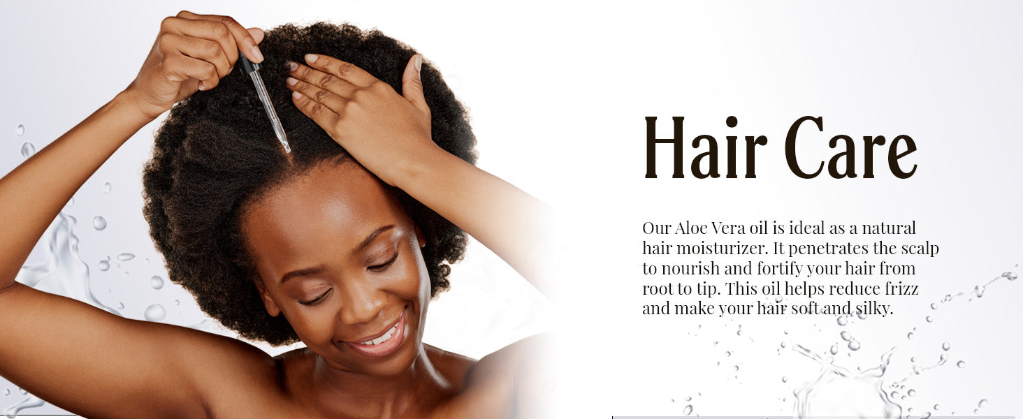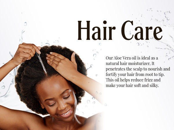 - For your hair: Our Aloe Vera oil is ideal as a natural hair moisturizer. It penetrates the scalp to nourish and fortify your hair from root to tip. This oil helps reduce frizz and make your hair soft and silky.