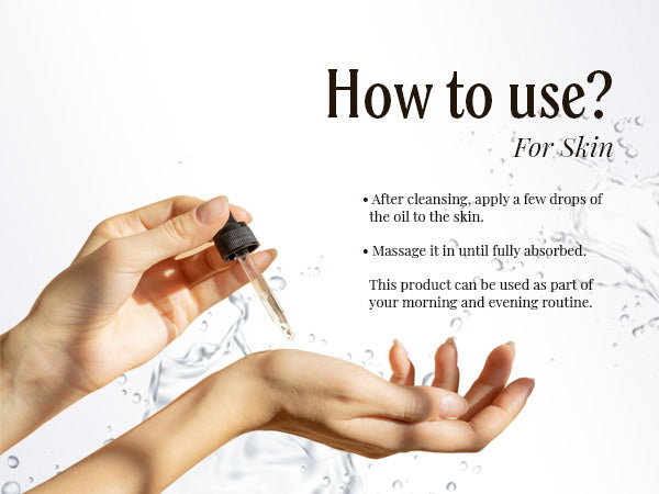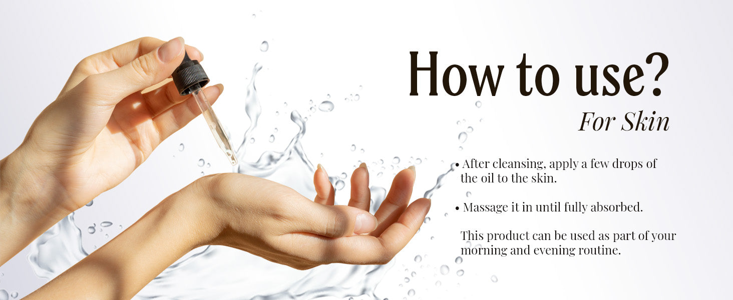 - Directions: Apply it directly to your skin or hair. Or you can mix it with your shampoo, conditioner, or soap. This oil can be left in the skin and hair for as long as you like; no need to wash it out.
