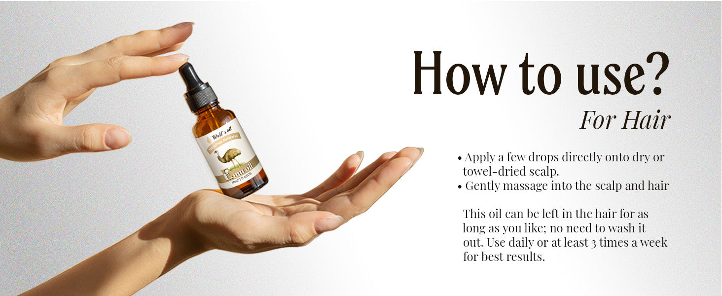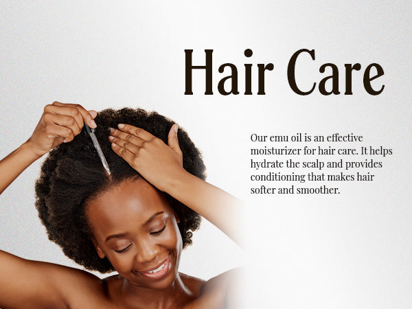 - For your hair: Our emu oil is an effective moisturizer for hair care. It helps hydrate the scalp and provides conditioning that makes hair softer and smoother. Achieve strengthened and revitalized hair with this natural solution!