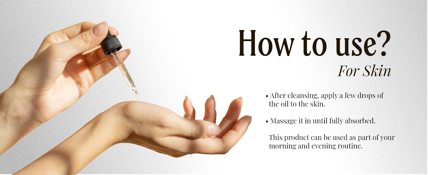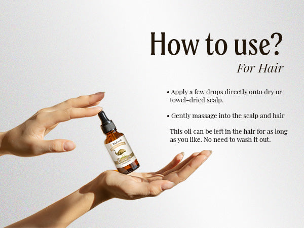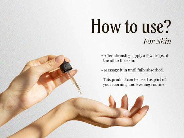 - Directions: Apply it directly to your skin or hair. Or you can mix it with your shampoo, conditioner, or soap. This oil can be left in the skin and hair for as long as you like; no need to wash it out.