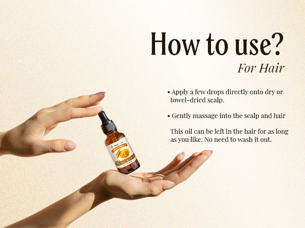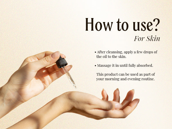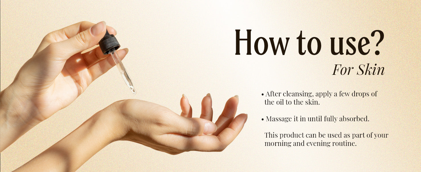 - Directions: Apply it directly to your skin or hair. Or you can mix it with your shampoo, conditioner, or soap. This oil can be left in the skin and hair for as long as you like; no need to wash it out.