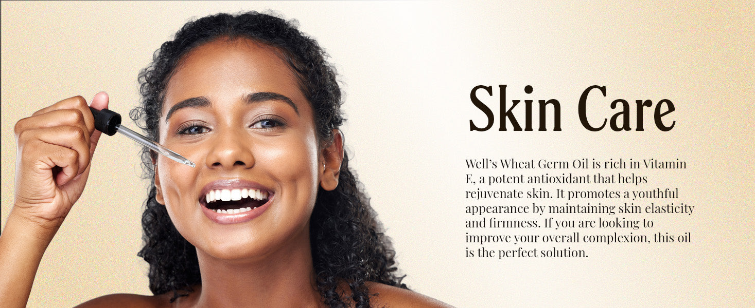 - For your skin: Well’s Wheat Germ Oil supports skin rejuvenation. This oil promotes a youthful appearance by maintaining skin elasticity and plumpness. If you are looking to improve your overall complexion, this oil is the perfect solution.