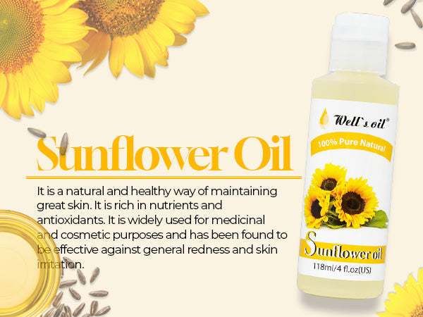 - Gentle and Non-Greasy: With its lightweight and non-greasy texture, Well's Sunflower Carrier Oil gets absorbed quickly into the skin, leaving it feeling smooth and rejuvenated.