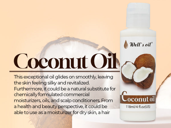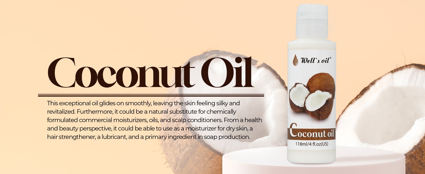- 100% Pure & Natural: Well's Oil Coconut Carrier Oil is carefully extracted from the freshest coconuts, ensuring it remains pure and retains all of its natural benefits. Free from any synthetic chemicals or preservatives, it delivers the goodness of nature in its truest form.