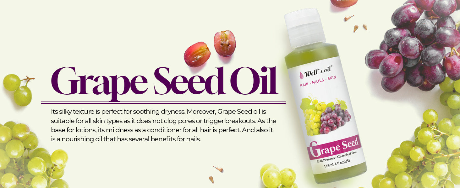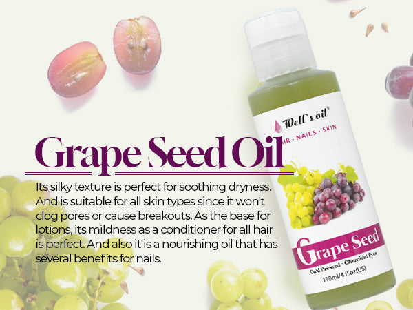 Introducing Well's Oil 100% Pure Natural Grape Seed Carrier Oil - a versatile and nourishing oil suitable for both skin and hair.