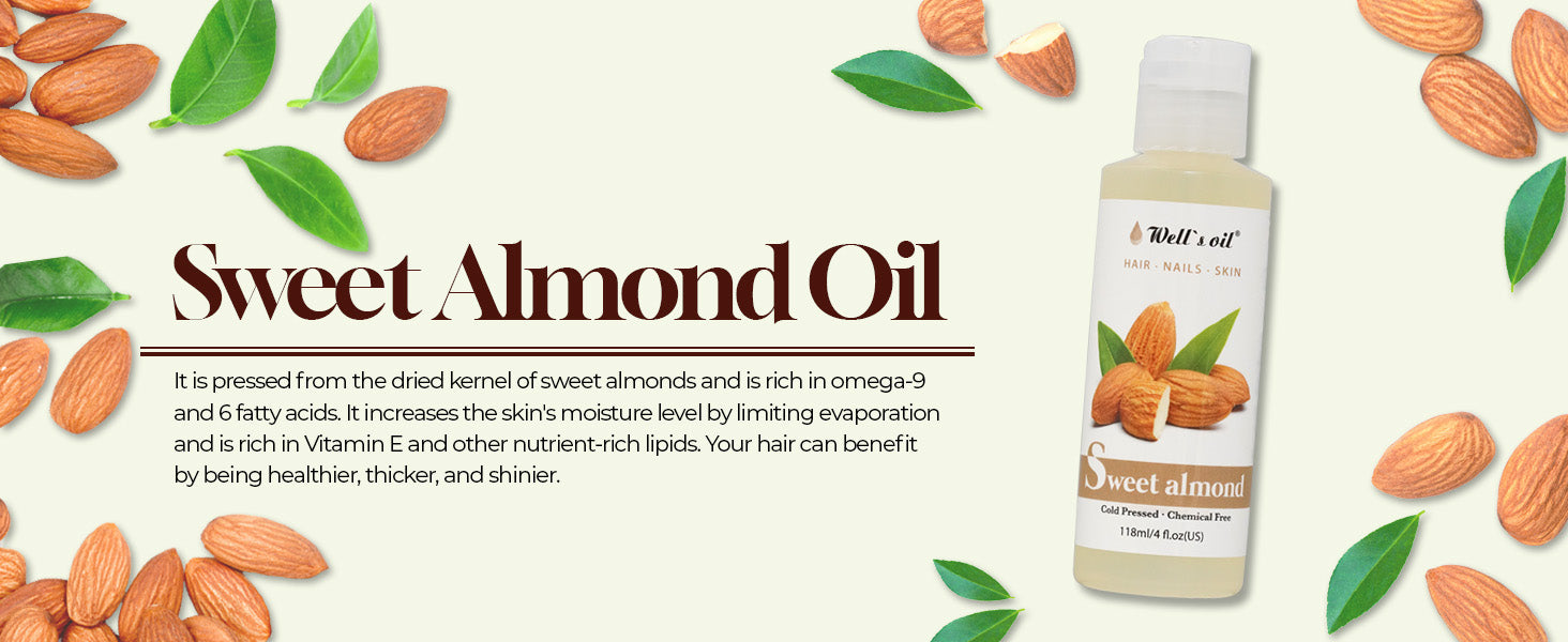 - Moisturizing and Nourishing: The light and non-greasy texture of Well's Oil Sweet Almond Carrier Oil makes it an excellent emollient that deeply moisturizes your skin and hair, leaving them soft, supple, and revitalized.