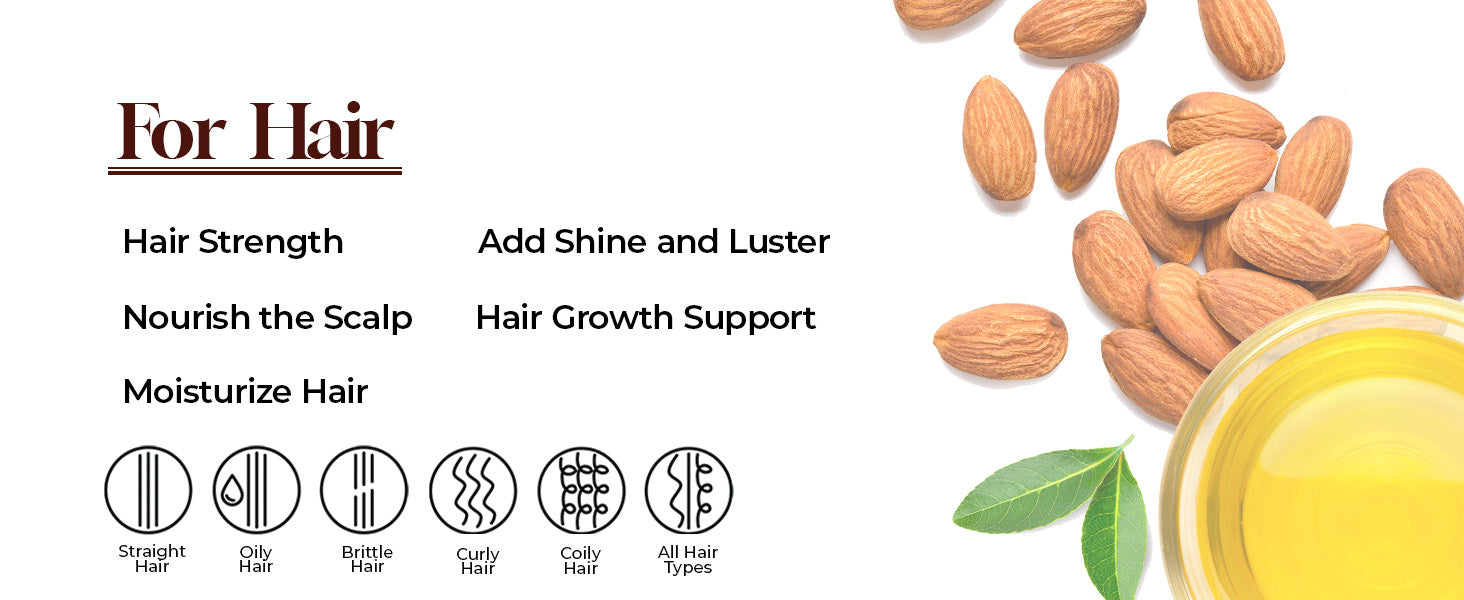 - Hair Care Essential: Pamper your hair with the nourishing benefits of sweet almond oil. It helps to strengthen hair, minimize split ends, and promote a natural shine.